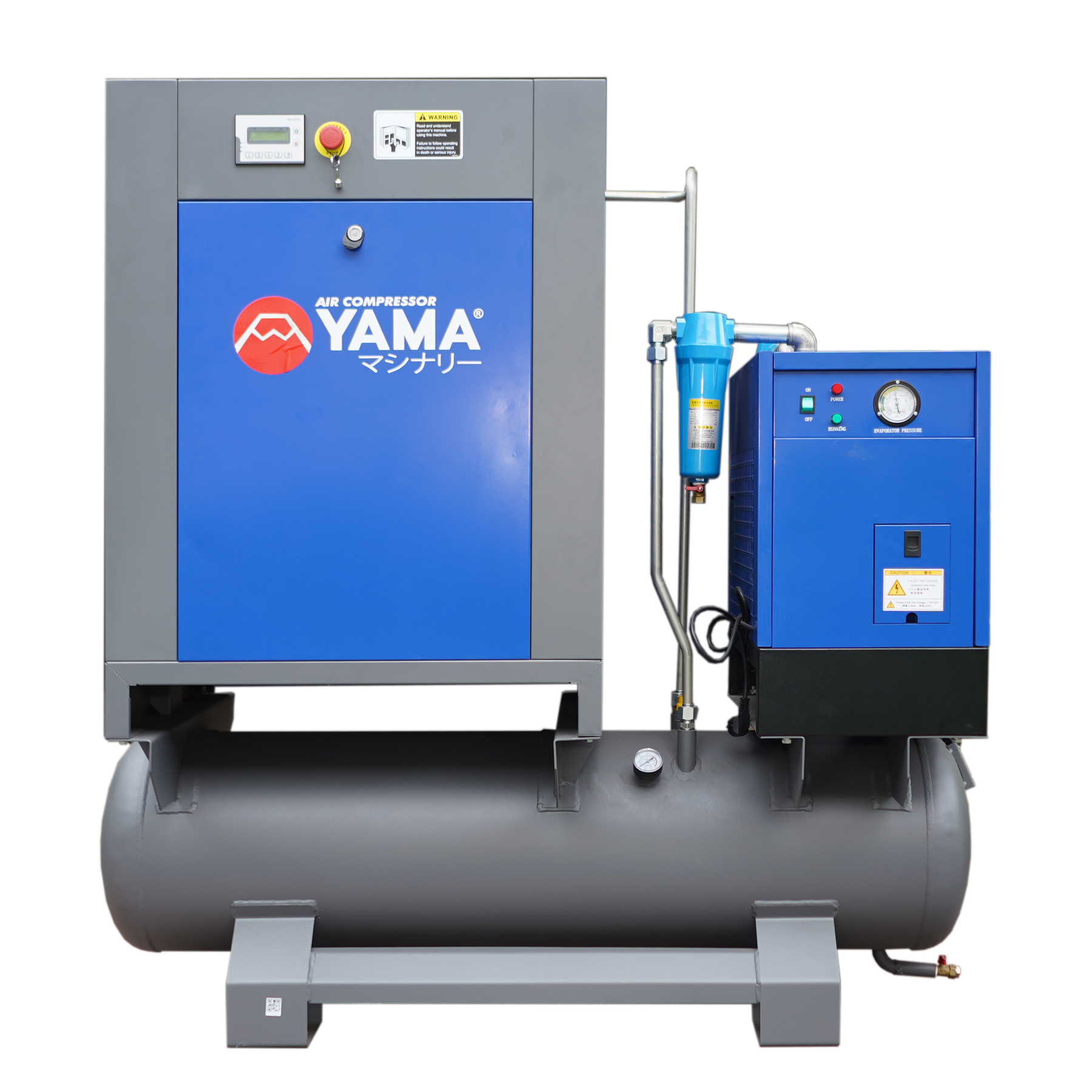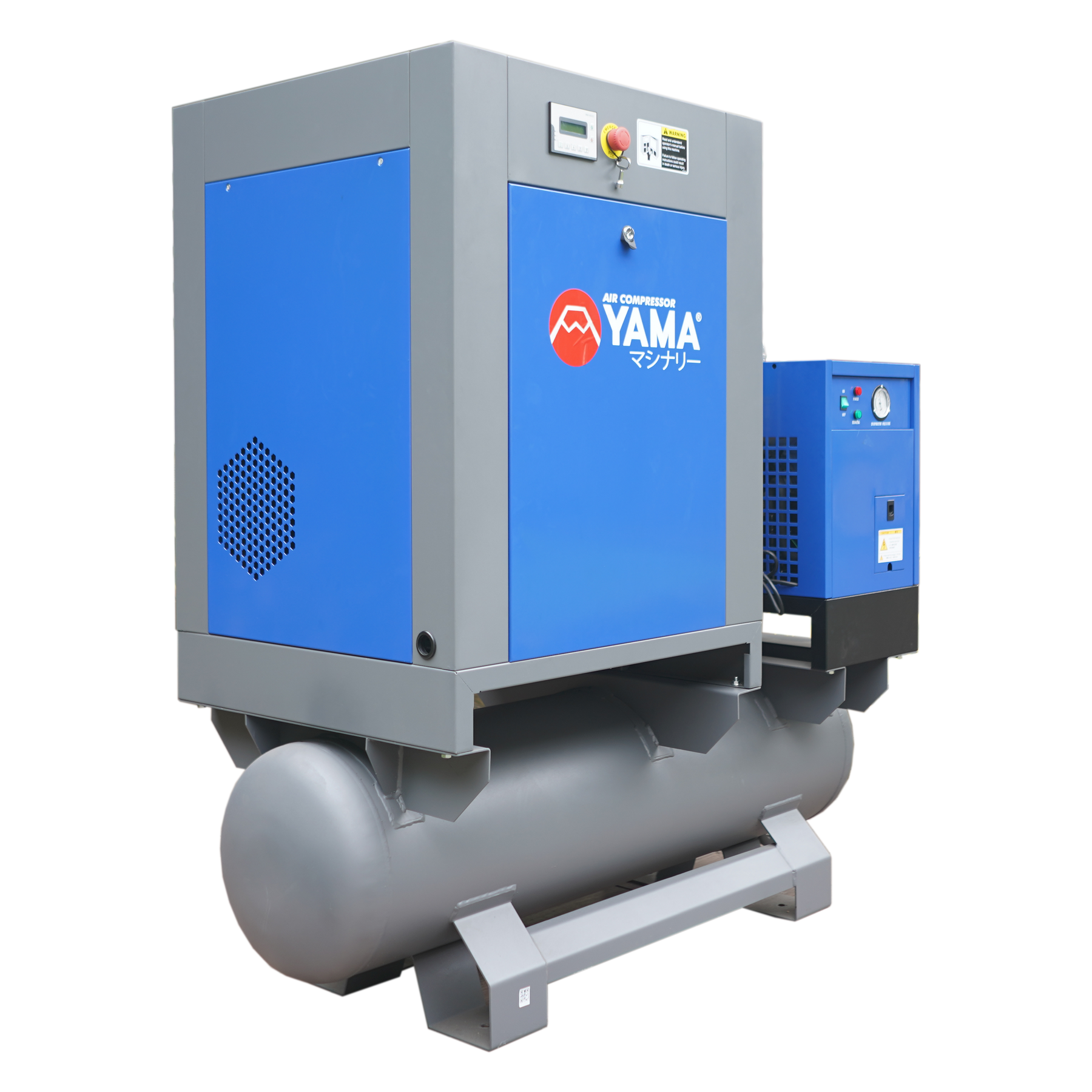 Kompresor screw udara dari YAMA Compressor yaitu YMSE-20TD kompresor udara yang menggunakan screw untuk menghasilkan udara bertekanan, cocok untuk proyek industri yang menuntut debit udara lebih tinggi.
