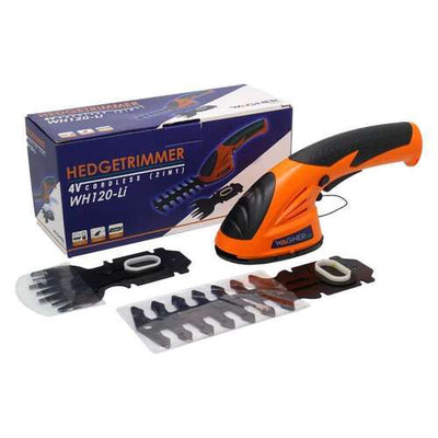 Wagner WH 120-LI 4V 2in1 Cordless Hegdetrimmer / Potong Pagar Tanaman merupakan Pemangkas dan pemotong rumput WH120-Li tanpa kabel dengan desain ergonomis dan mudah untuk digunakan dengan baterai performa tinggi 1500mAh. Sangat cocok untuk mendukung kegiatan hobi berkebun Anda. Dilengkapi dengan 2 sistem pengunci untuk keamanan Anda pada saat pengoperasian dan penggantian mata pisau. Serta mata pisau untuk memangkas 8 cm dan penghias 12 cm.