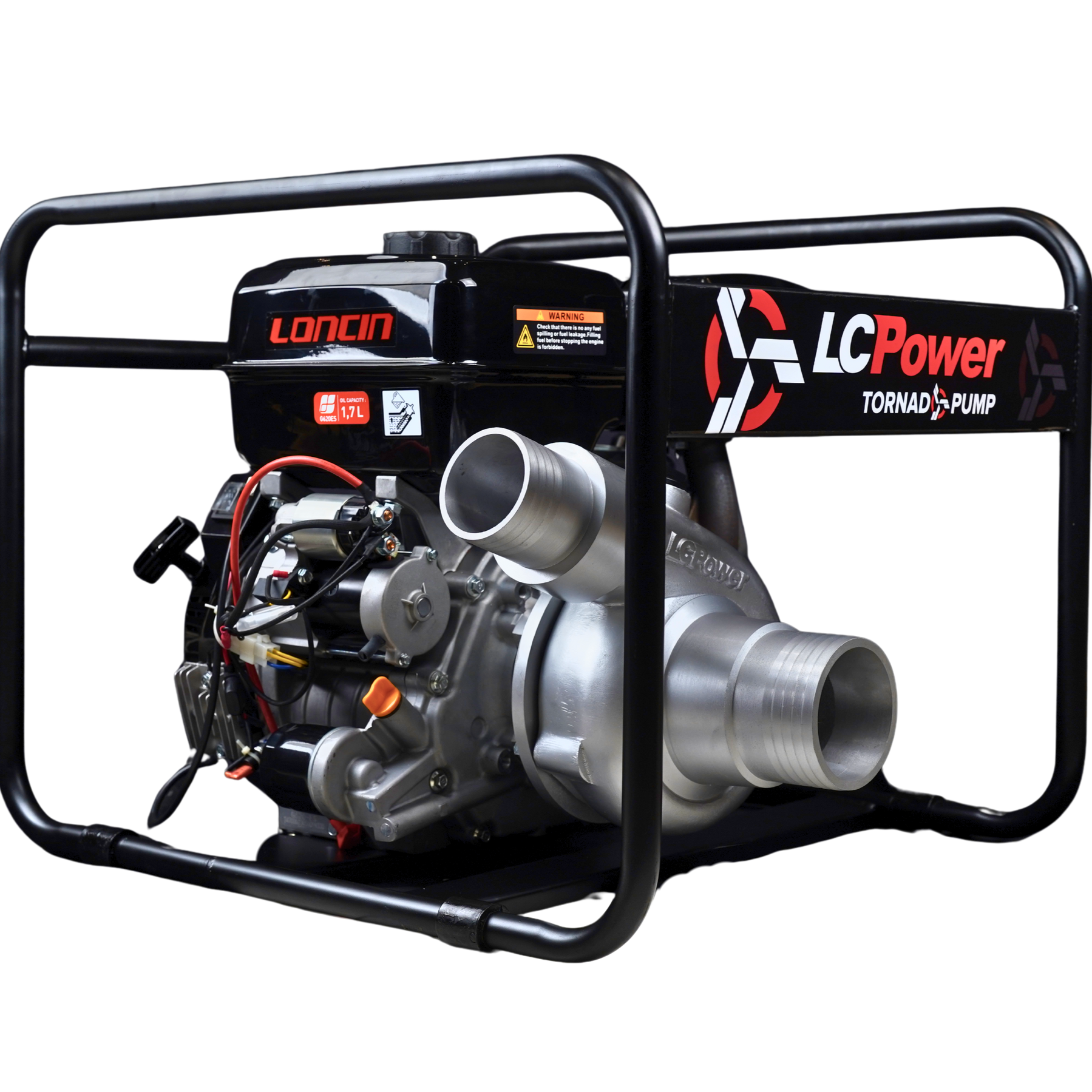Pompa tornado dari LCPower Tornado 21 4inch menggunakan kapasitas mesin 622 CC dengan tenaga maksimal di 20.5 HP, yang membedakan Tornado 21 4” ini adalah diameter pipa hisapnya 100 milimeter tetapi diameter pipa buangnya 75 milimeter.